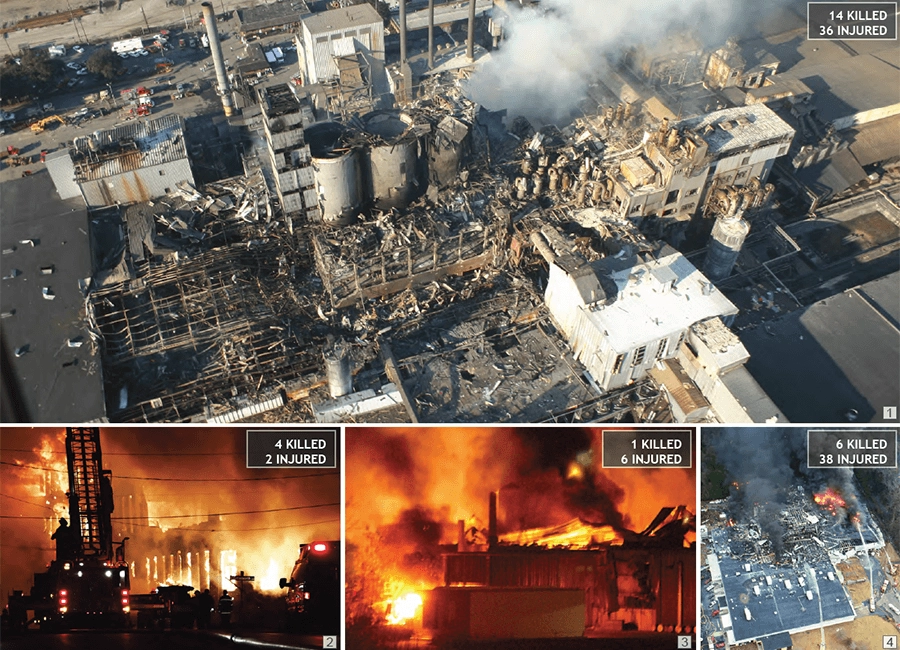 February 7 2008, Port Wentworth, GA; An unknown source ignited accumulated sugar dust, causing a violent explosion.